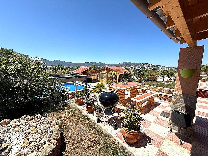 Im Freien erwartet Sie ein atemberaubender privater Pool mit separatem Kinderplanschbecken, ein großer Whirlpool und mehrere sonnendurchflutete Terrassen – ideal zum Entspannen oder für Gäste. Das Anwesen verfügt außerdem über eine charmante Sommerküche, angrenzend an einen geräumigen Abstellraum, der sich leicht in einen separaten Anbau oder zusätzlichen Wohnraum umwandeln lässt.