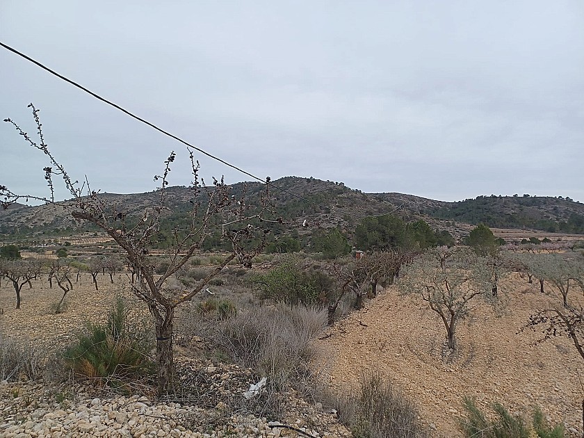 Schönes Grundstück in der Nähe von La Romana / Hondon de las Nieves (7530 m²), geeignet für einen Wohnwagen oder den Olivenanbau. Die Olivenproduktion beträgt derzeit 3000 kg pro Jahr.