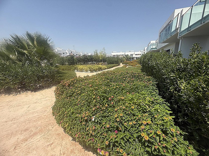 Genießen Sie das schöne Wetter von der vorderen Terrasse aus, die Parkplätze und Stauraum bietet, oder entspannen Sie auf der privaten hinteren Terrasse mit Blick auf die wunderschön angelegten Gemeinschaftsgärten. Die Immobilie ist mit einer Klimaanlage (warm/kalt) ausgestattet und komplett möbliert mit hochwertigen Haushaltsgeräten ausgestattet. Sie ist sofort bezugsfertig.