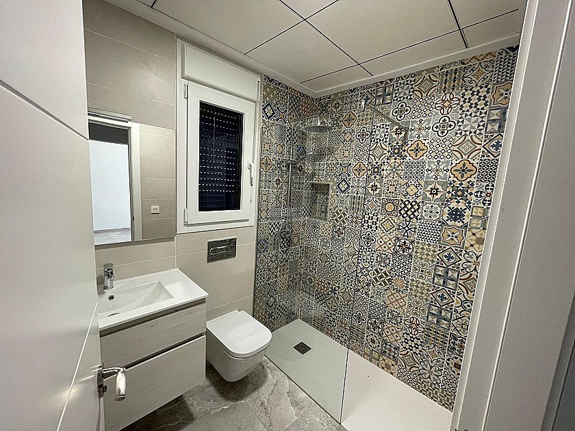 Die Badezimmer sind mit Duschsäule, Duschwanne oder Badewanne, Waschtischen (in verschiedenen Farben) mit Waschbecken, Armaturen und Spiegeln sowie einer großen Auswahl an Wandfliesen und Keramikbodenfliesen in verschiedenen Farben, Holzoptik etc. ausgestattet.