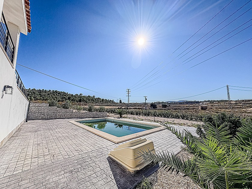 Im Außenbereich erwartet Sie ein wunderschöner Pool (8 × 4 m), umgeben von einem weitläufigen Grundstück mit atemberaubender Aussicht. Die Villa ist direkt über eine asphaltierte Straße erreichbar und liegt nur fünf Fahrminuten vom Zentrum von Pinoso entfernt. Das nahegelegene Dorf El Rodriguillo ist zu Fuß erreichbar und bietet ein gemütliches Restaurant/Bar – ideal für einen Spaziergang am Abend.