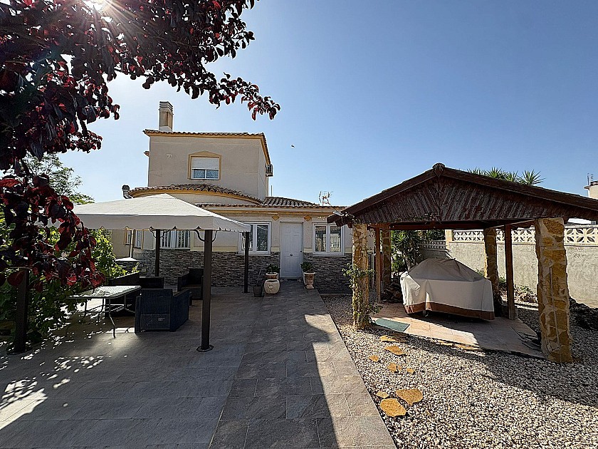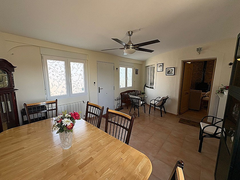 The home features a fully enclosed terrace that serves as a charming dining area, perfect for year-round use. Inside, the layout is spacious and practical, with four well-sized bedrooms and three modern bathrooms, making it ideal for families or hosting guests.