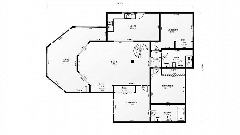 The villa's thoughtful design includes two access points, namely the kitchen and the main entrance, eliminating the need for external stairs and improving accessibility.