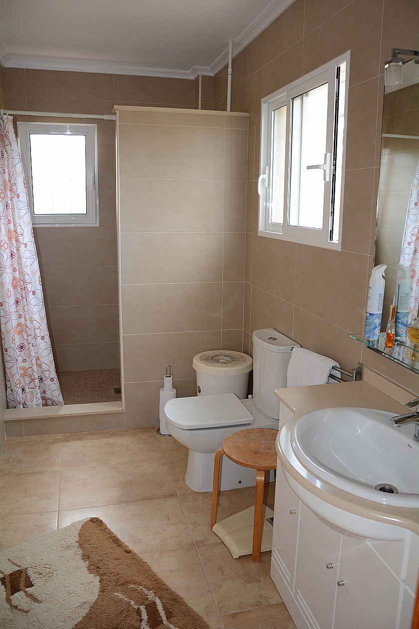 The villa is on a corner plot, therefore larger than average. You have two entrances and the possibility of parking a car at each entrance. On the plot you also have a swimming pool with very nice views of the surrounding mountains.