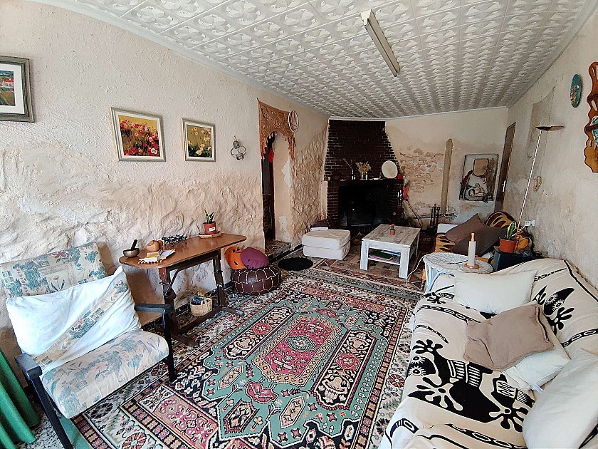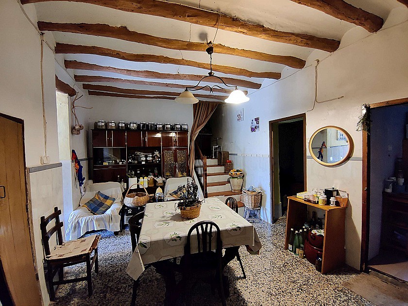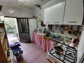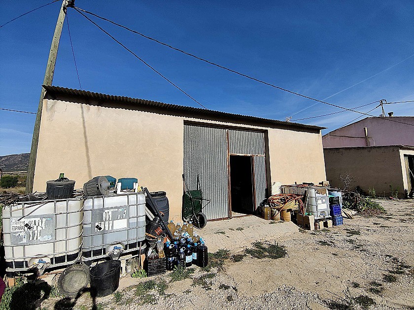 Country House with a back garden and two large garages, in the village of Don Ciro, located 10 minutes drive away from the towns of Pinoso and Monovar. The house has 3 bedrooms downstairs plus another 2 and an open landing upstairs. There is also 1 bathroom, a kitchen, entrance hall, dining room and a lounge with a fireplace and storage room. There are two big garages for tractors used for storage, and a small enclosed outside kitchen/bbq, with a small bit of garden for planting crops outside. At the back of the house is also a courtyard garden with room for a pool.