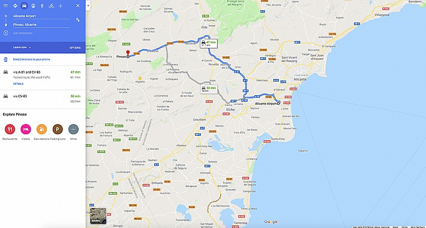 Pinoso (El Pinós) is one of Spain’s richest towns, with a marble mine, thriving footwear industry, salt deposits and a booming wine and agriculture industry. The town is located in the mountainous countryside of the Alicante wine region, 45-50 minutes drive to Alicante airport, city and beaches and close to the border of Murcia.