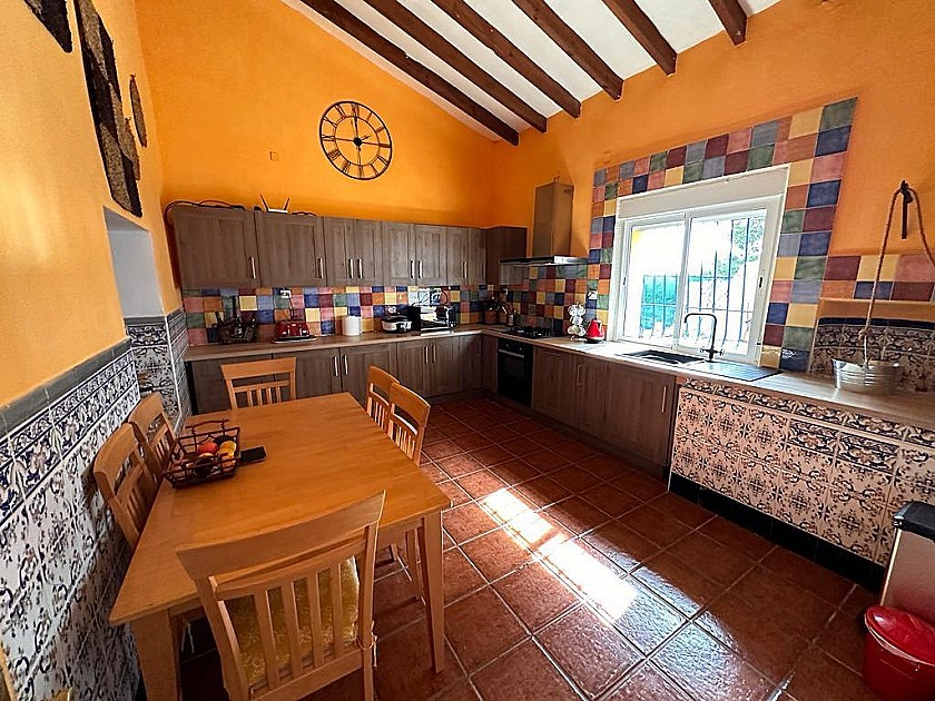 Wood beamed Finca with 3-4 Bedroom. New Rustic integrated fitted Kitchen. Large bathroom with His and Hers Sinks and Showers. Large garage (opportunity for Conversion to separately self-contained guest house). Central Heating and Hot water Gas Combi Boiler (2 Bottle feed). Log Burner Pizza oven. Walled Courtyard. Mains drinking Water