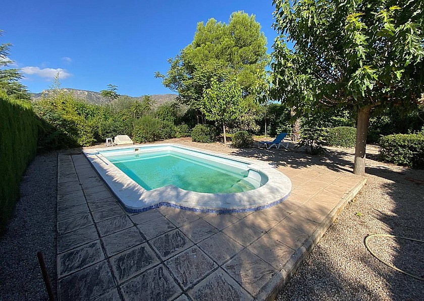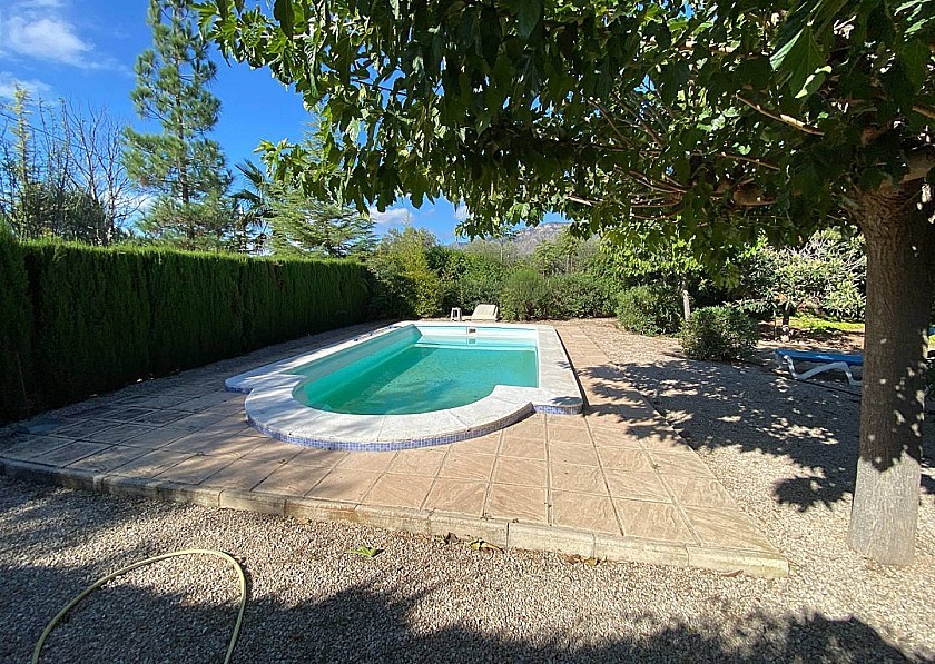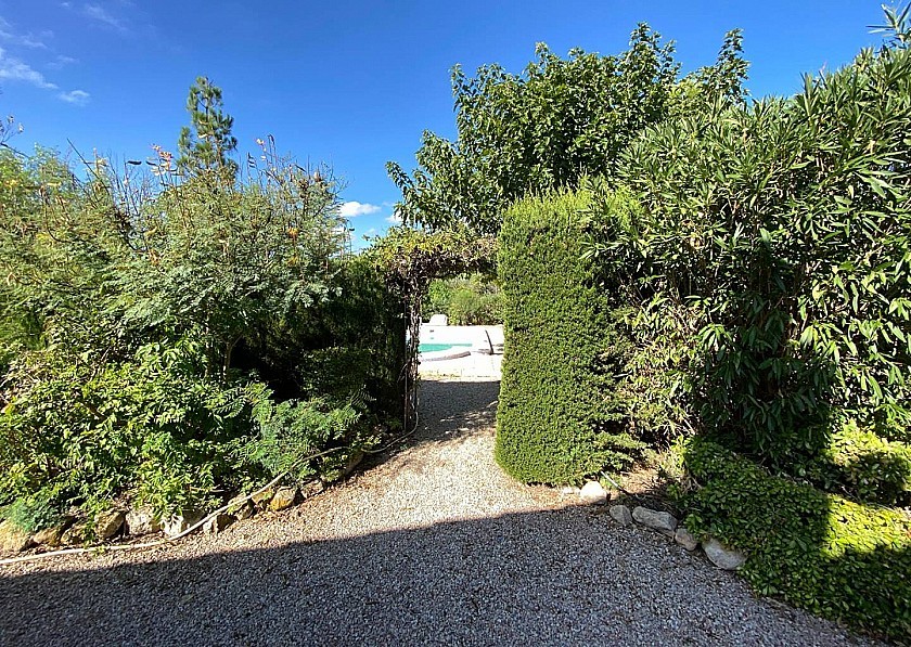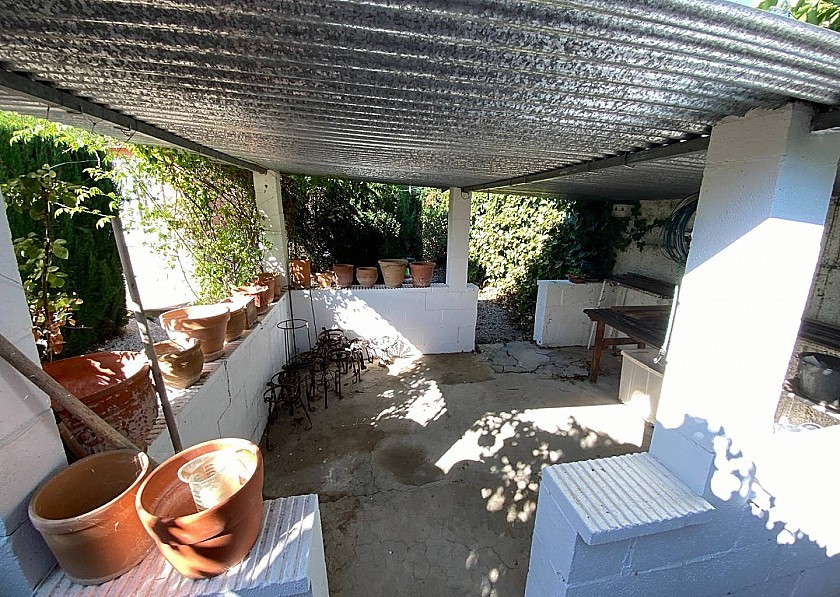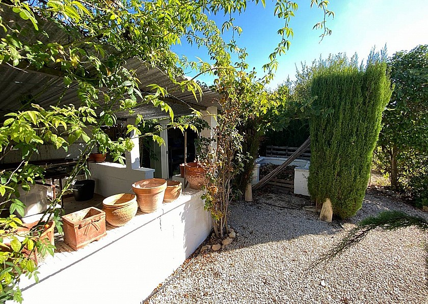 Walking around the property is it a series of well-kept garden areas along with a very private swimming pool area with terracing and more naturally shaded areas and sunny areas which is to the left-hand side of the property. Walking around to the rear there are five outbuildings, a small garden shed, a bigger tool shed, a compost area, a covered small area and then a storeroom. The entire property is 100% legal so there is an opportunity to remove these outbuildings and install a wooden cabin for guests.