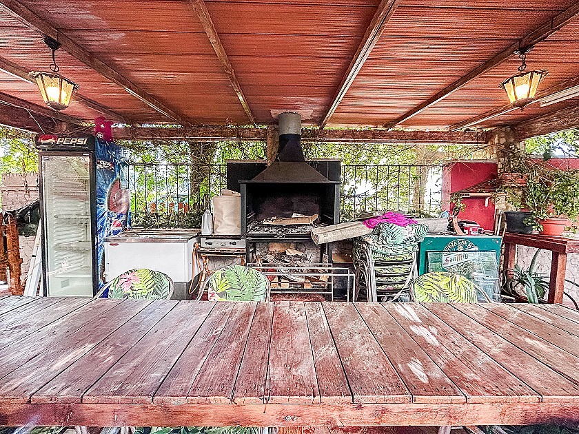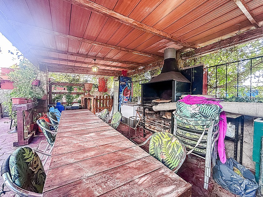 The exterior areas are particularly appealing. There is a private garage with space for 2–3 vehicles, and a welcoming porch with seating area, barbecue zone, and decorative lighting, ideal for family gatherings or entertaining friends. The plot of around 2,000 m², fully fenced, offers privacy and security. A courtyard adds further value, with a second barbecue and a large multipurpose room, which can be adapted as a leisure area, gym, storage, or studio.