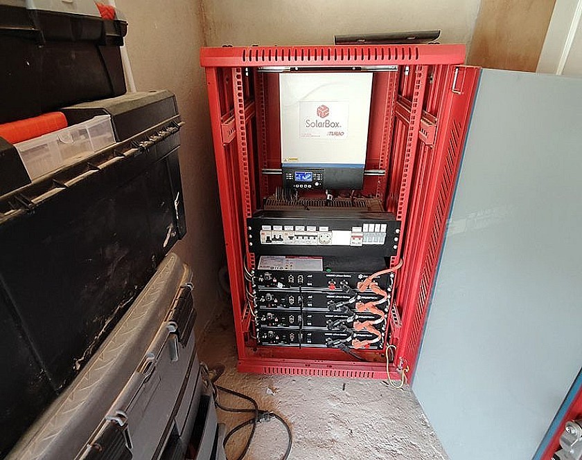Garage for one car, inside which are the batteries for the solar panel system. The house is completely self-sufficient in electricity and is connected to the mains water supply.