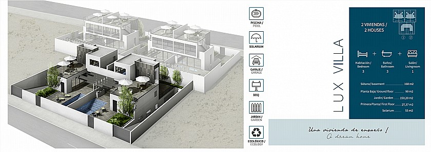 A small signature style development – JUST 4 semi detached and two detached three level contemporary villas – All enjoying generous plot sizes, with private swimming pools, garage-basements and the all important roof solarium boasting glorious sea and coastal views.