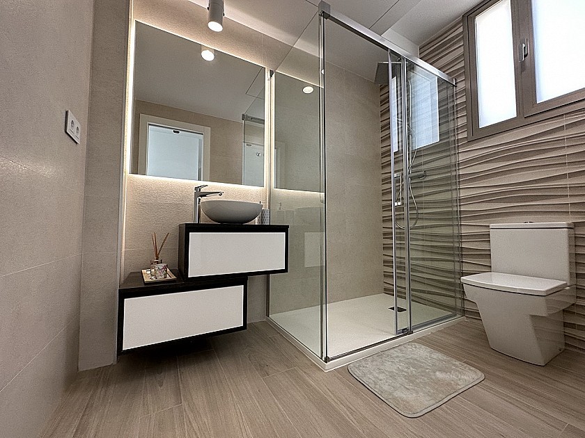 Sunset Beach Lux Villa – Luxury brand new key ready Villa (1 other to be built) with a private pool. This Contemporary high quality build on three levels comprising; Ground Floor 90m2, First Floor 28m2 + Solarium 55m2 and Basement 160m2 (opportunity to create additional living space). The villa has 3 double bedrooms, 3 luxury bathrooms, open plan living area with modern fitted kitchen, breakfast bar / island. Large ´hide and slide´ patio doors open up to reveal the large private swimming pool with plenty of surrounding terracing. Airzone A-C is fitted to this key ready villa which can be controlled via an app.