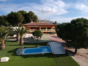 Rustic finca of 79.92ha, electricity, two balsas, two pozos, private hill of the 165ha hunting ground, mountain pines, huerta and llanura to sembrar. With country house of 550 m2 built, two floors, a dormitory with beds and cupboards, four bathrooms, two kitchens furnished with domestic appliances, two commercial rooms with fireplace and terrace, large living room of 60 m2 with marble fireplace, swimming pool and large solarium, outdoor barbecue with four toilets.