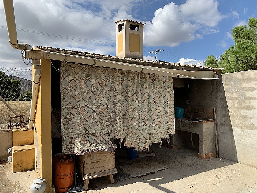 La casa cuenta con un amplio salón con chimenea y está integrada en la cocina, que tiene una puerta que da a la zona de barbacoa. Al final del pasillo encontramos cuatro amplios dormitorios dobles, todos con armarios empotrados, dos baños en el pasillo y una puerta de entrada adicional que da a un lateral de la casa. Alrededor de la parte delantera y un lateral, disponemos de una enorme terraza cubierta, ideal para disfrutar de los días de verano con la tan necesaria sombra. La propiedad cuenta con un pozo lateral y una amplia zona de barbacoa cubierta con un amplio espacio para cocinar. En la parte trasera de la casa, encontramos una pequeña caseta para perros y un trastero. También hay un transformador eléctrico en otra pequeña edificación, lo que puede generar un alto consumo eléctrico si es necesario, por ejemplo, para el funcionamiento de una zona de acampada o saunas.