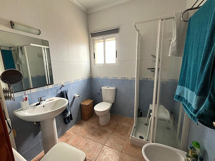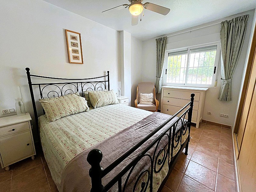 La propiedad ofrece cuatro espaciosas habitaciones dobles, dos de ellas con baño en suite, todas con armarios empotrados, ventiladores de techo y vistas panorámicas. La suite principal, en la planta superior, cuenta con baño propio y terraza privada. En la planta baja, otro dormitorio da directamente al jardín.