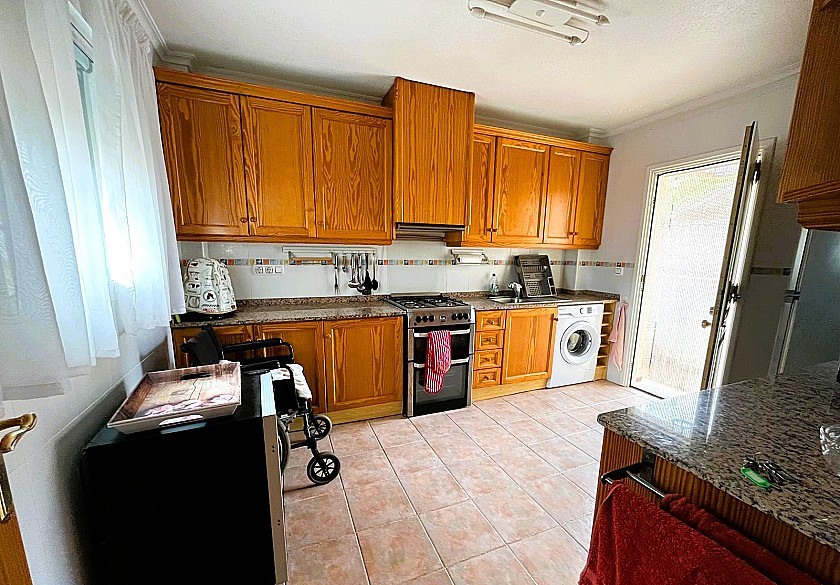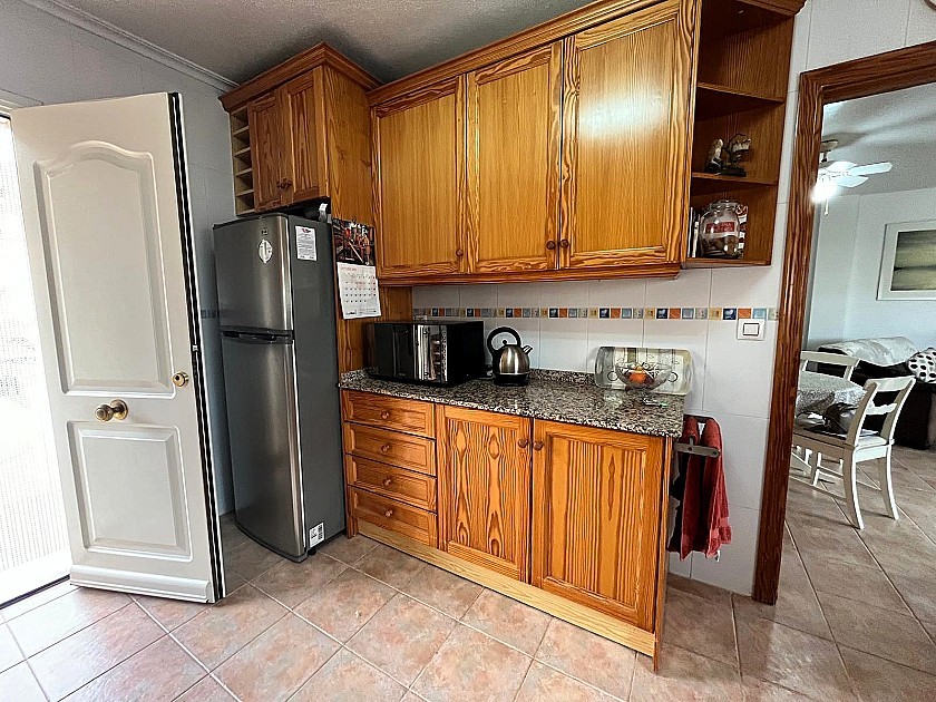 En el interior, el luminoso salón-comedor se integra con una moderna cocina totalmente equipada, con acceso directo al jardín.