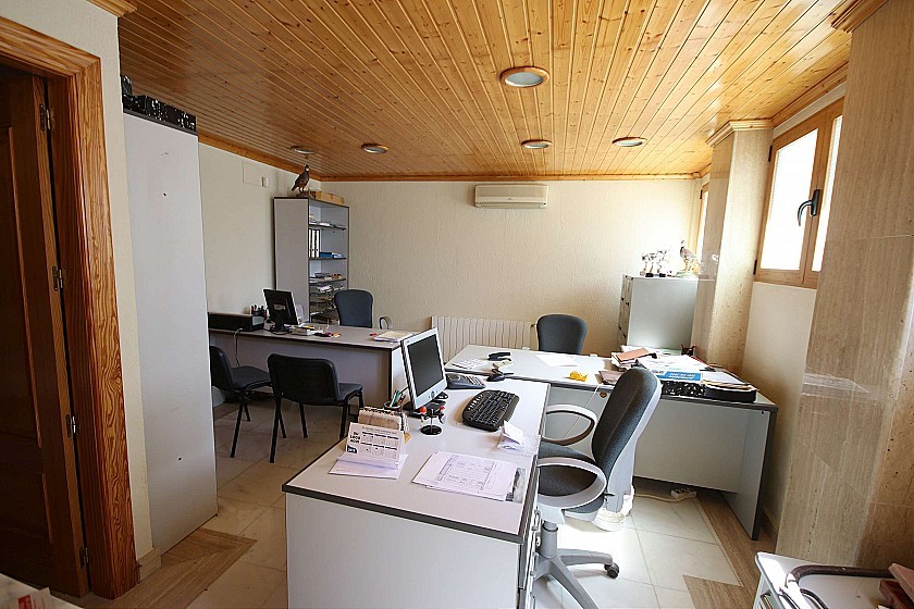La parte taller / negocio dispone de vestuario, baño, despacho de 50m² con aseo y 3 naves industriales.