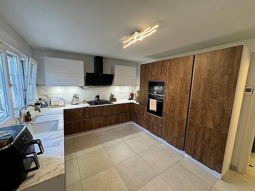 La villa cuenta con una casa de invitados completamente equipada en el sótano de la planta baja, que ofrece mayor privacidad para los visitantes. Esta suite de invitados incluye su propia cocina, sala de estar, un dormitorio y un baño, lo que la convierte en un espacio perfecto para estadías prolongadas.