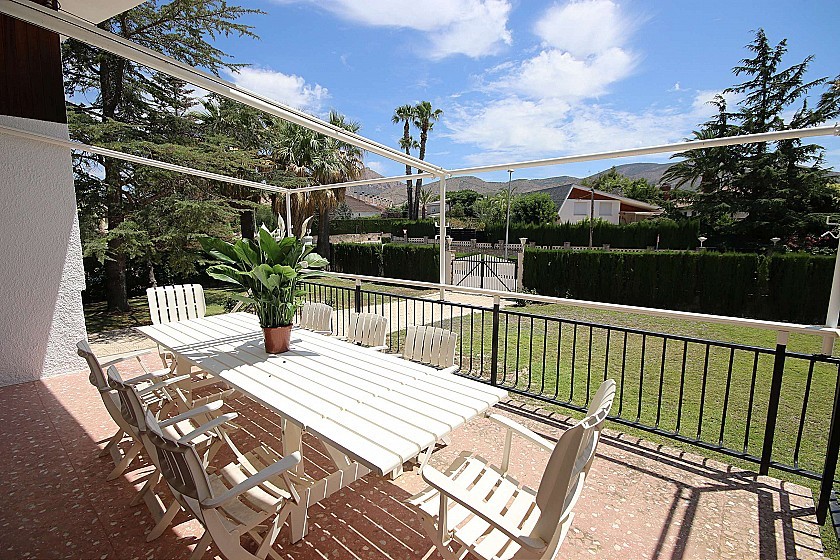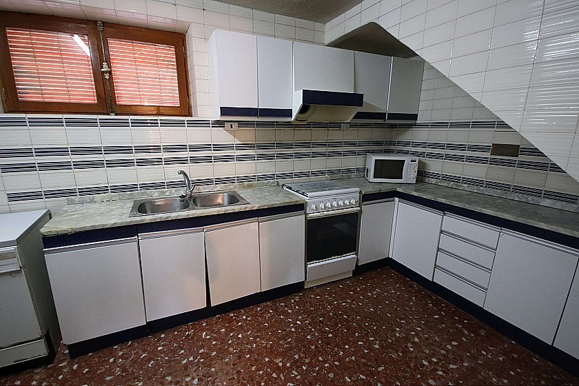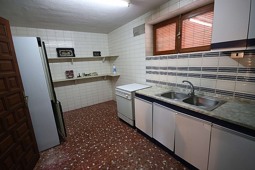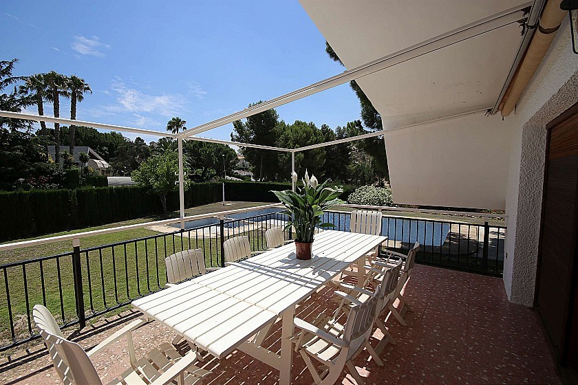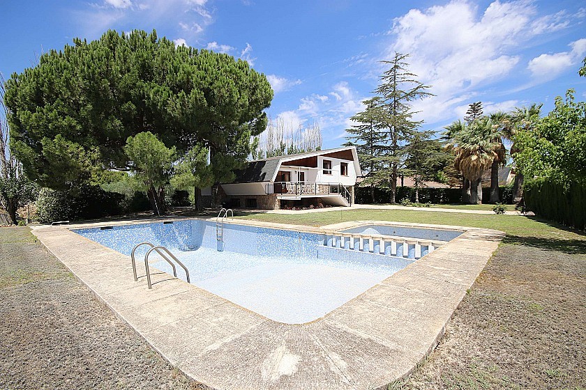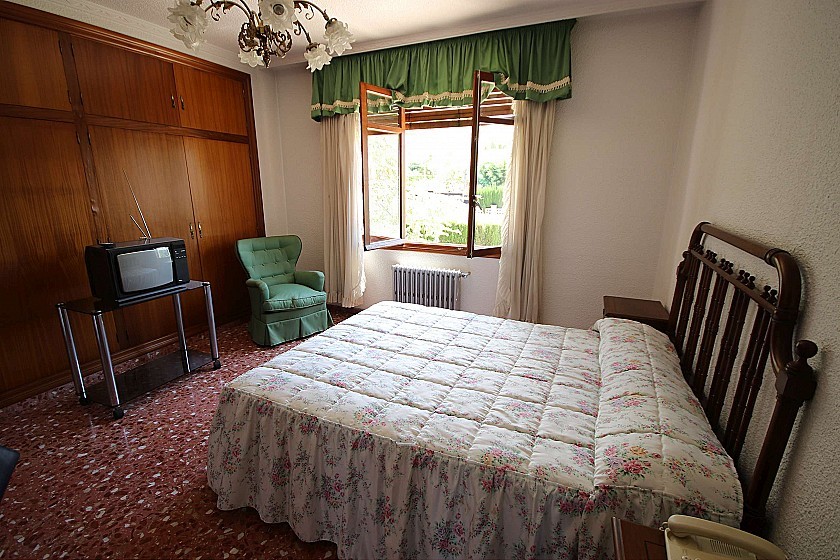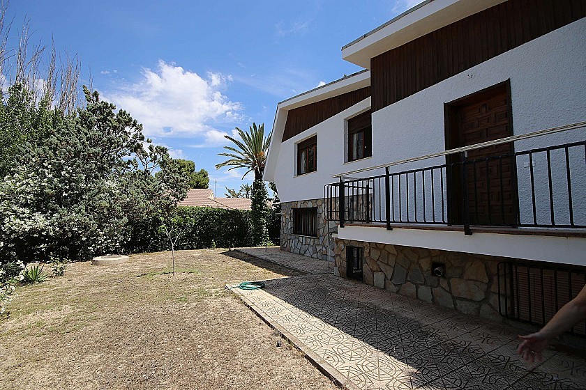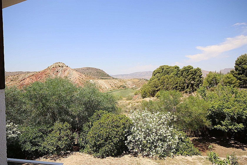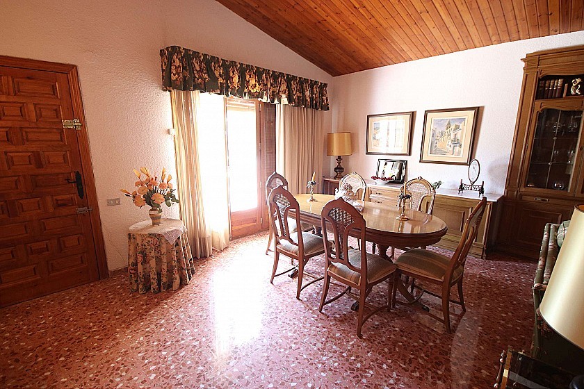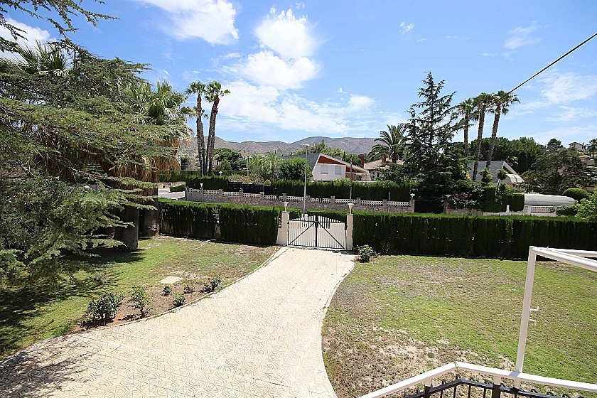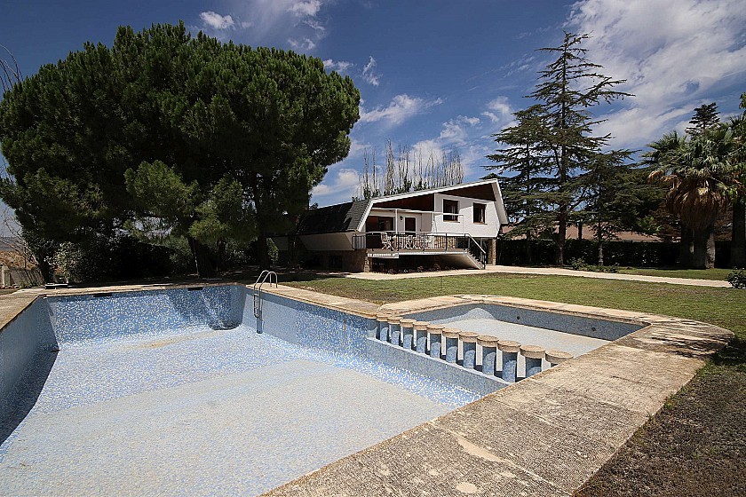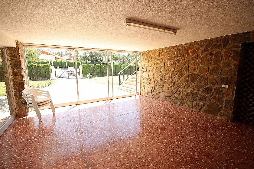 Chalet independiente en urbanización Loma Bada, cerca de Elda, Alicante. Dispone de 5 habitaciones, 2 baños más un aseo, 2 cocinas, 2 salones y más habitaciones. En dos plantas, con entradas independientes. También hay calefacción central, lavadero y terraza. Afuera hay una gran piscina, un jardín maduro y una cancha de squash española, que podría convertirse en una cancha de tenis. El tamaño de la casa es de aprox. 250m² con una parcela de 2800m².