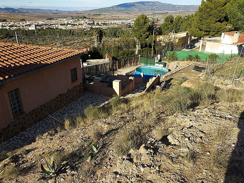 En la parte trasera de la casa se encuentran las colinas y las impresionantes vistas de Pinoso desde las terrazas y el jardín.