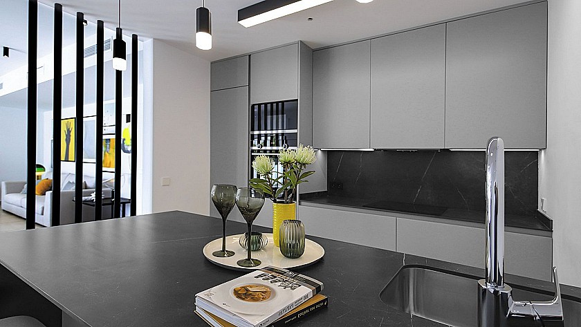 Adaptada al estilo de vida moderno, Villa Elios está construida con materiales de alta calidad, es luminosa y mantiene una perfecta armonía arquitectónica. Cuenta con salas de estar de planta abierta con una cocina elegantemente equipada con iluminación y amplias puertas correderas de cristal que conectan directamente con los jardines privados y la gran piscina. Además, contará con calefacción por suelo radiante, electrodomésticos de alta eficiencia y materiales de alta gama seleccionados especialmente para esta vivienda única. ¡Todo está en los detalles! El espacio perfecto para disfrutar del suave clima mediterráneo durante todo el año.