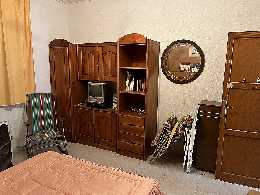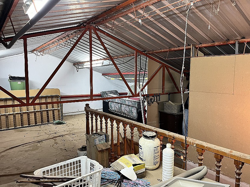 Frente al baño, hay una pequeña escalera que conduce a la planta superior. Aquí podemos ver que hay una estructura de soporte para el tejado completamente nueva, y esta amplia zona está actualmente habilitada como un dormitorio adicional, mientras que el resto del espacio es diáfano y ofrece muchas posibilidades. Esta zona podría convertirse en un área de ocio, con mesa de billar y diana de dardos; podría usarse como zona de manualidades, perfecta para montar una gran maqueta de trenes o un circuito de Scalextric, o incluso un observatorio casero sería fantástico en esta zona de Murcia, con tan poca contaminación lumínica.