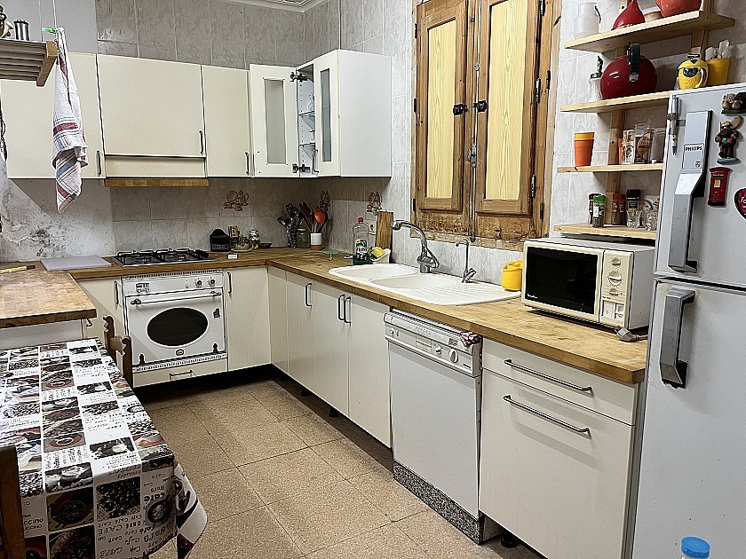 La propiedad tiene 138 m2 construidos y se ha iniciado una reforma que ahora necesita que alguien le dé el toque final para convertirla en un hermoso hogar. Al entrar en la propiedad, accedemos a una amplia sala de estar diáfana, con suelo de mármol macizo. A la izquierda, encontramos el primer dormitorio doble, que también está preparado para instalar un baño en suite. En la parte trasera de la sala de estar, a la derecha, tenemos una amplia cocina-comedor diáfana, con una chimenea, equipada con una encimera de madera maciza, placa de gas y horno, campana extractora, frigorífico-congelador y lavavajillas.