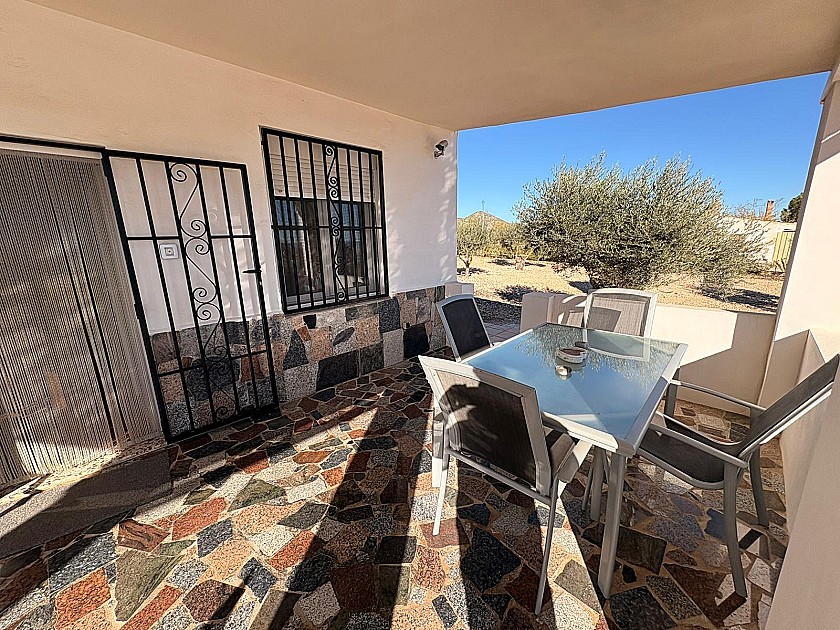 Le terrain, entièrement clôturé et très bien entretenu, abrite des oliviers, amandiers, grenadiers et figuiers matures – idéal pour les personnes souhaitant profiter d’un cadre naturel et paisible avec leurs propres récoltes. Un carport couvert offre un espace de stationnement à l’ombre, tandis qu’une grande pergola permet de se détendre en extérieur pendant les chaudes journées d’été.