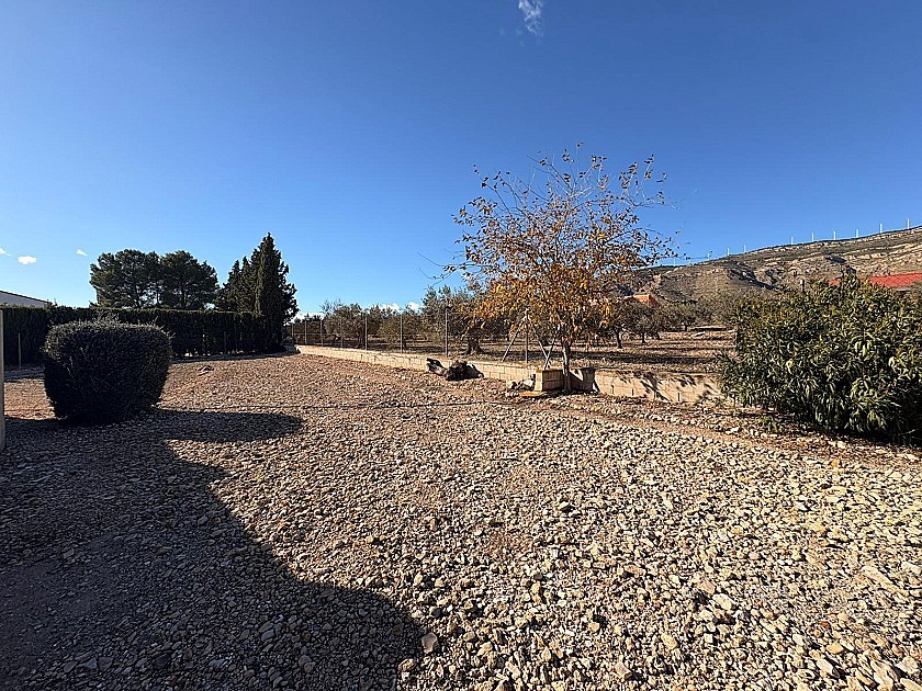 Située à quelques minutes à pied du centre historique de Caudete, cette superbe villa individuelle de 3 chambres et 2 salles de bains offre le parfait mélange entre intimité, confort et charme méditerranéen. Implantée sur un terrain de plus de 4 000 m², la propriété dispose d’une piscine privée, de vastes terrasses et de nombreux arbres fruitiers matures, le tout entouré de superbes vues sur la campagne et les montagnes.