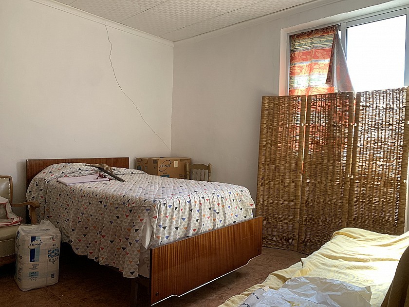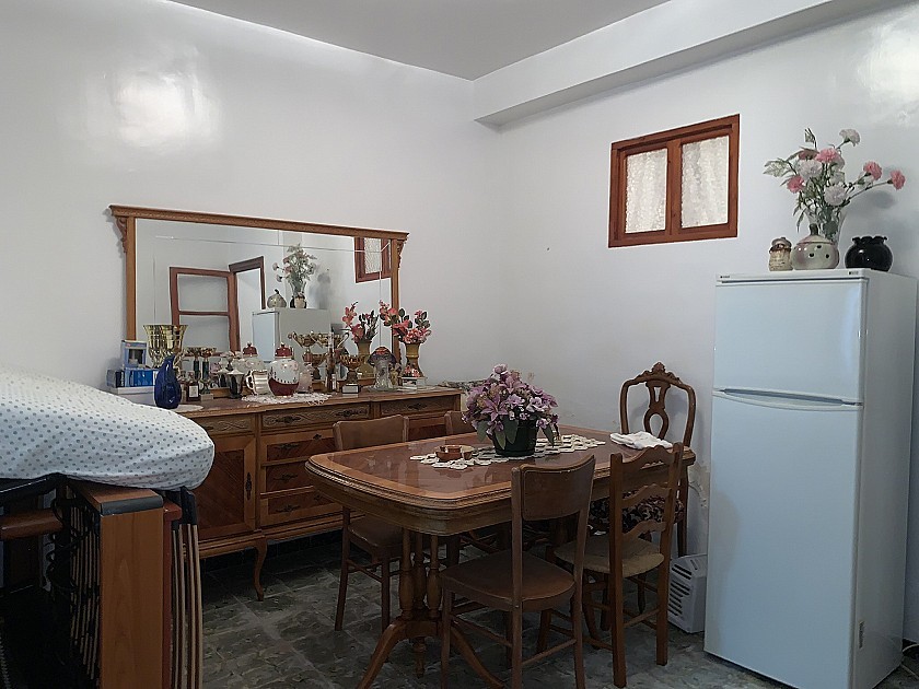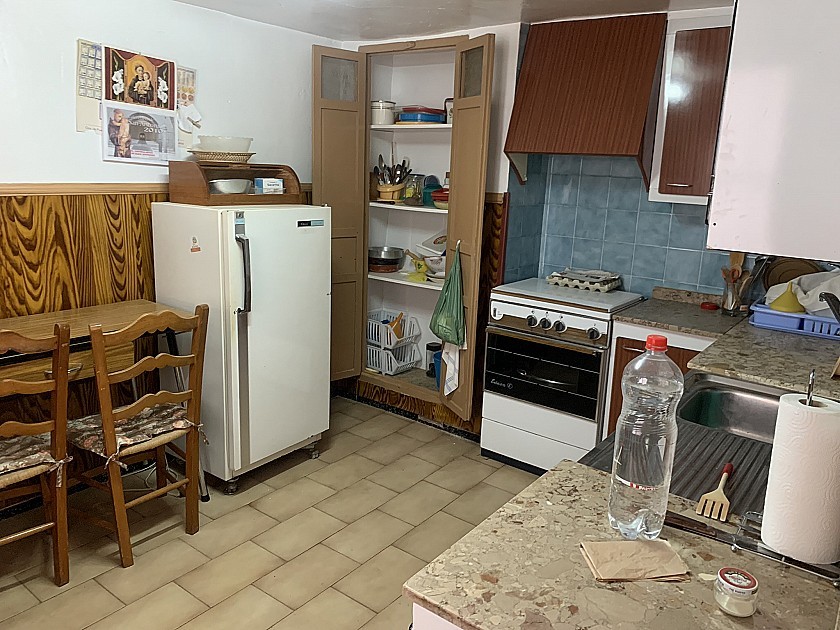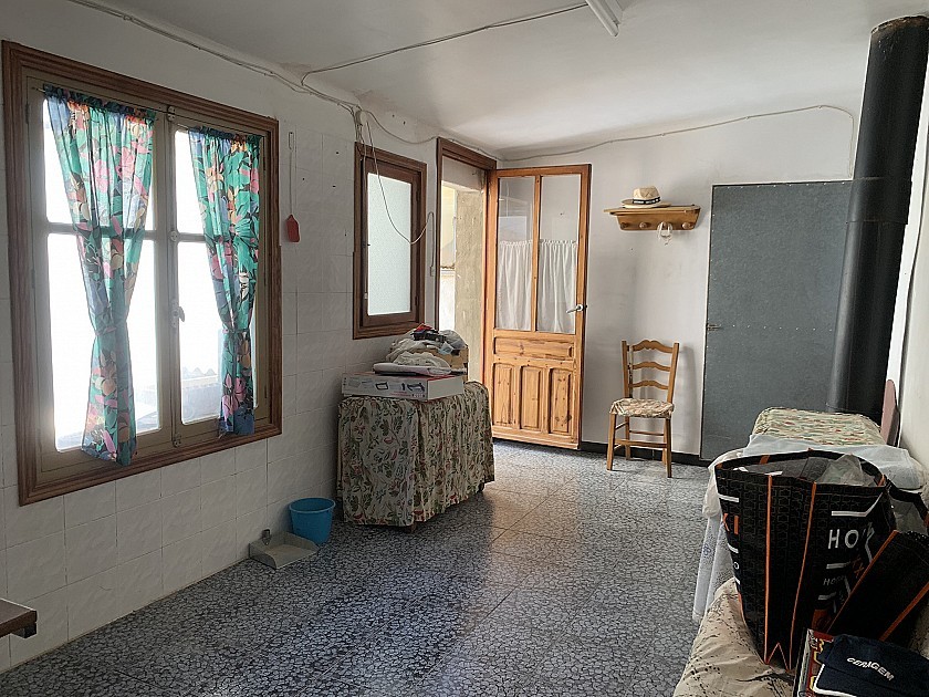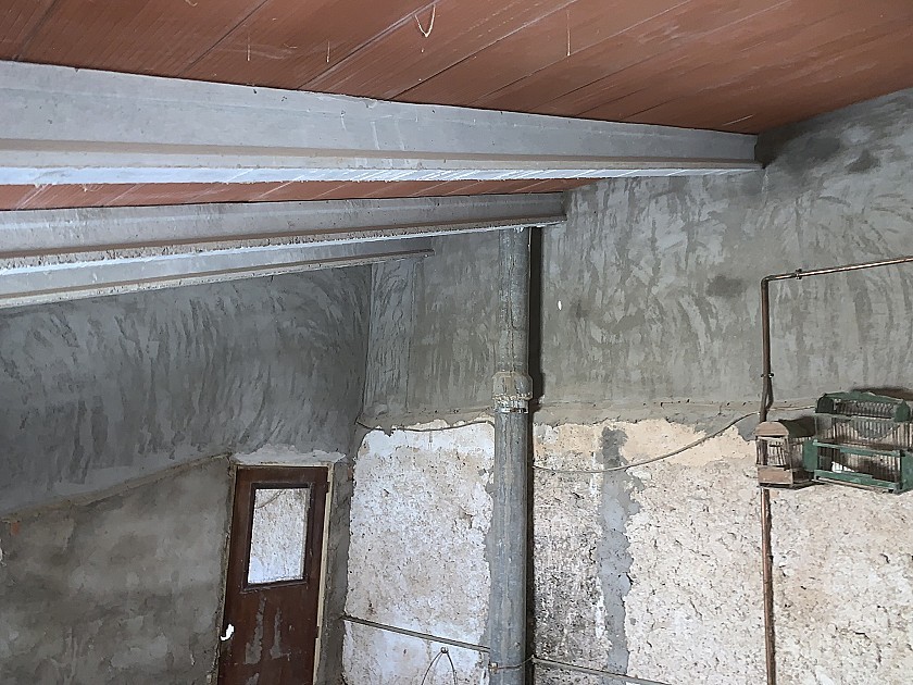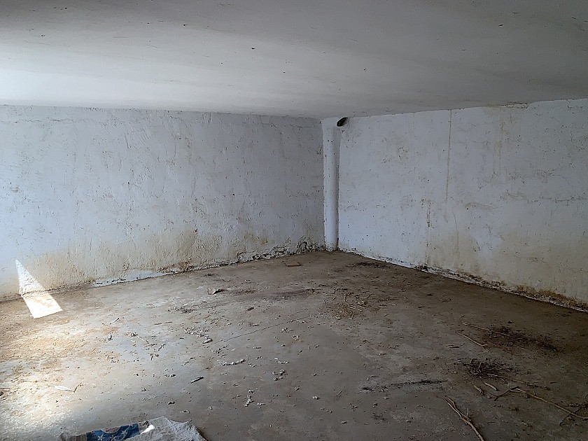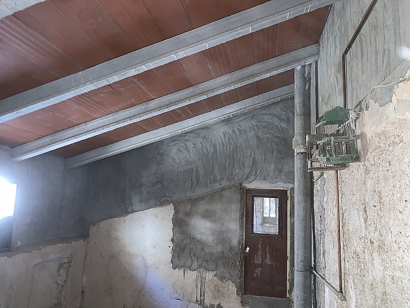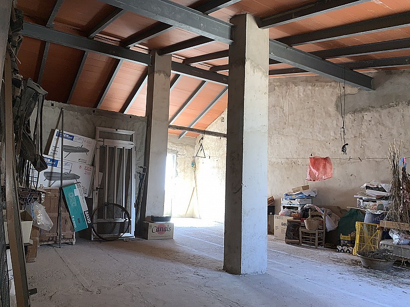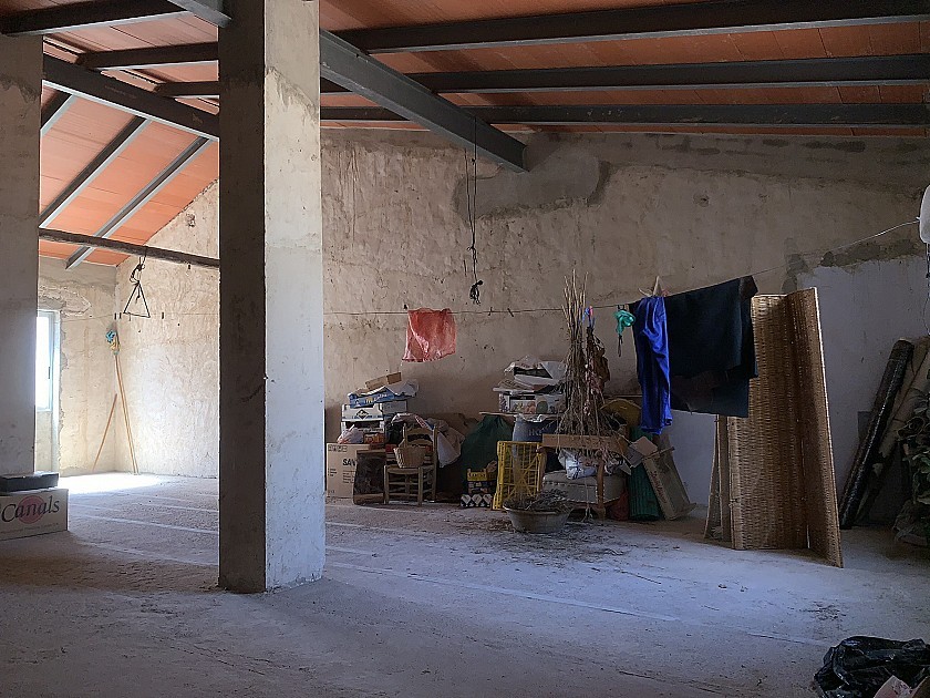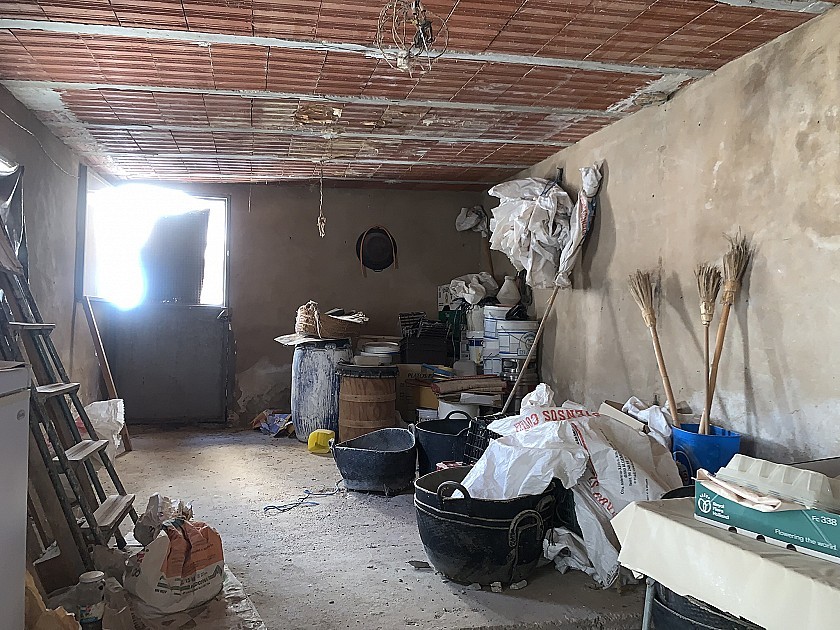 De retour en bas et nous avons une autre grande pièce, avec un nouveau toit (le toit est le sol de la pièce à l'étage avec de nouvelles poutres en béton) et cette pièce est utilisée pour le stockage, elle pourrait devenir une cuisine d'été avec le devant ouvert, ou un petit chambre d'amis ou même une partie de la maison principale de deux chambres.