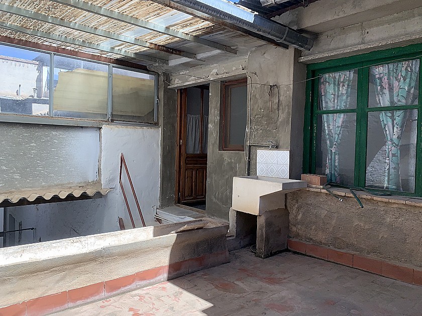 La cour est d'environ 40m non couverte, et il y a la possibilité d'enlever le bâtiment en béton de trois étages donnant un espace de 75m2 et d'utiliser cet espace pour installer une petite piscine.