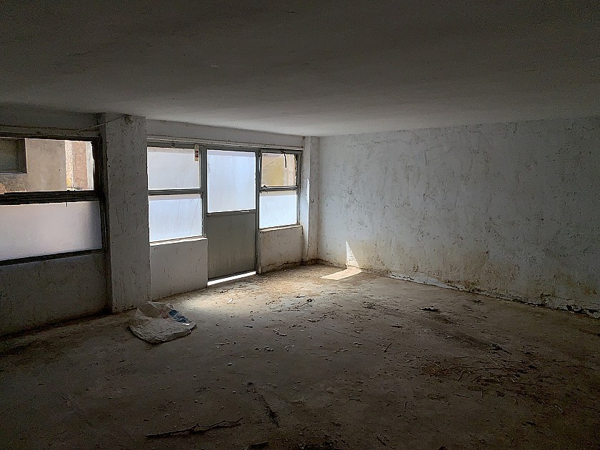 Dans la cour, nous avons des escaliers jusqu'au premier étage, où nous avons une petite terrasse pour nous asseoir à l'extérieur, puis dans le salon, puis la partie avant de la maison est une grande pièce ouverte, qui a eu un tout nouvel acier structure et nouveau toit construits, et cette pièce a actuellement été divisée avec une seule chambre à l'avant, le reste peut être divisé selon les besoins des nouveaux propriétaires. Plus loin après les escaliers, et nous avons une autre grande pièce, c'est une longue pièce qui vient également d'avoir un nouveau toit équipé de poutres en béton et de briques. Encore une fois, cette zone pourrait être utilisée pour plus d'espace de vie ou de chambres et de salles de bains, etc.