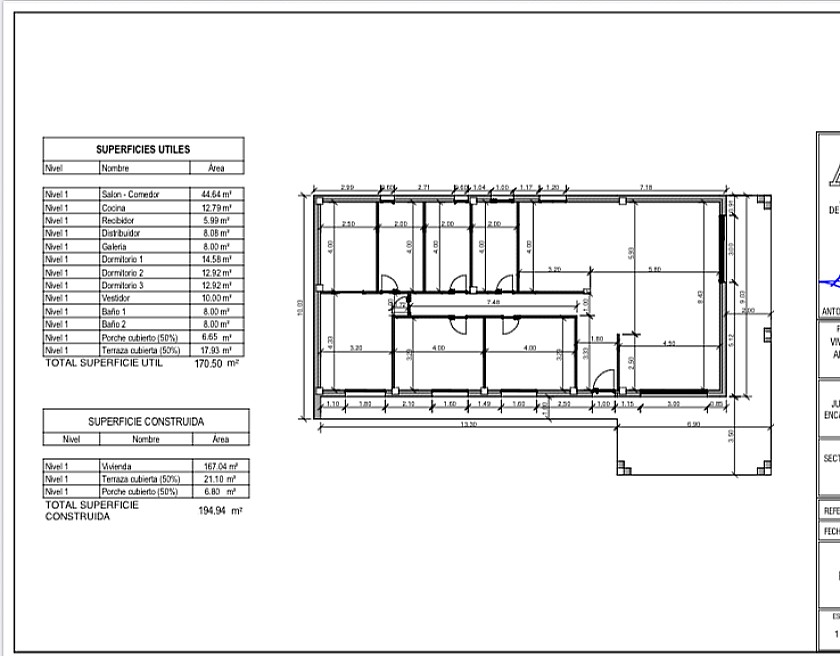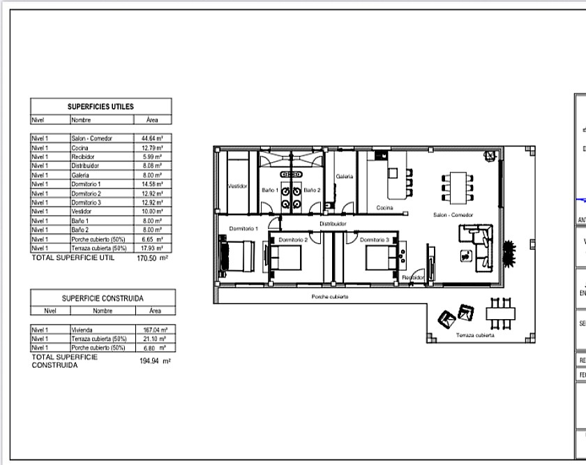 Le terrain est livré avec un plan d'architecte pour une villa de plain-pied, comprenant 3 chambres et deux salles de bains.