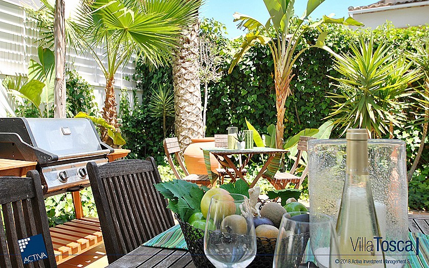 Le jardin botanique tropical et l'espace barbecue à l'arrière de la villa vous invitent à vous asseoir et à vous détendre, car c'est l'espace privé idéal pour vous et vos invités pour profiter des fraîches nuits d'été.