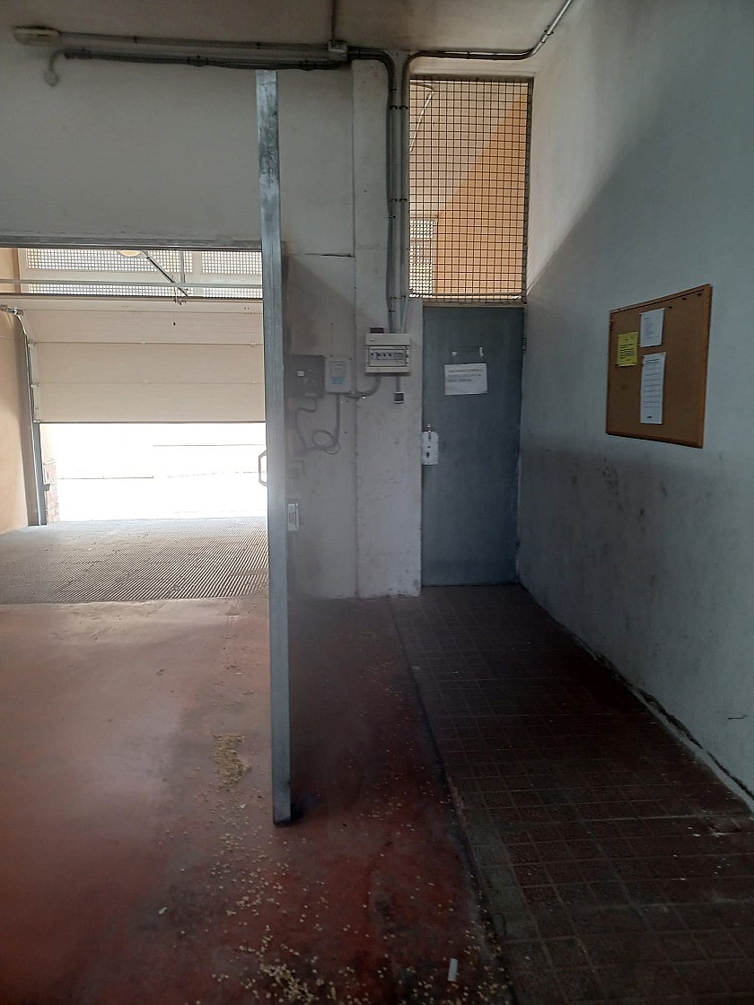 Un garage privé avec portes électriques mène à la place de parking attenante accessible depuis la rue à côté de l'immeuble.