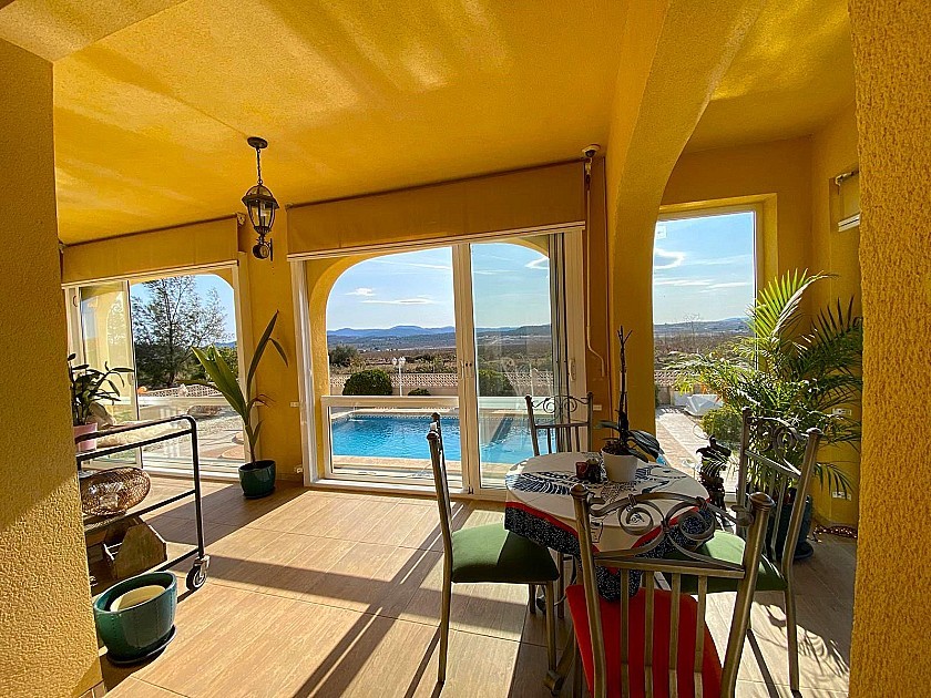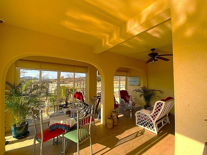 - Grand porche fermé avec fenêtres coulissantes, idéal pour une utilisation toute l'année.