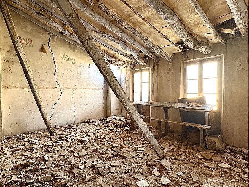 Idéalement située au cœur du village, elle dispose d'une grande cour et d'une cave, mais n'est actuellement pas raccordée à l'électricité ni à l'eau courante.