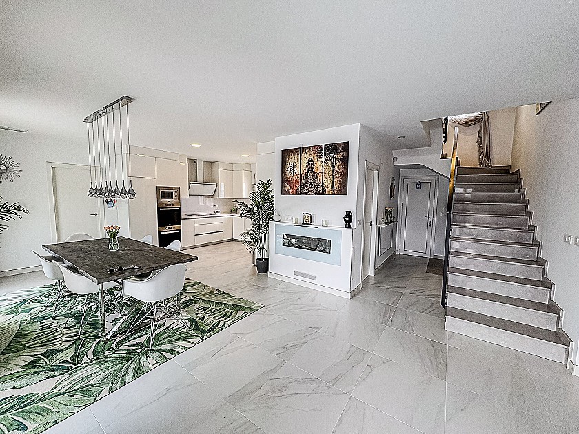 Que ce soit en été ou en hiver, cette villa offre un confort thermique idéal grâce à un système de climatisation complet (à l’étage et au rez-de-chaussée), des panneaux chauffants d’appoint dans les chambres et le palier, ainsi qu’une cheminée au gaz dans le salon et un foyer électrique dans la cuisine.