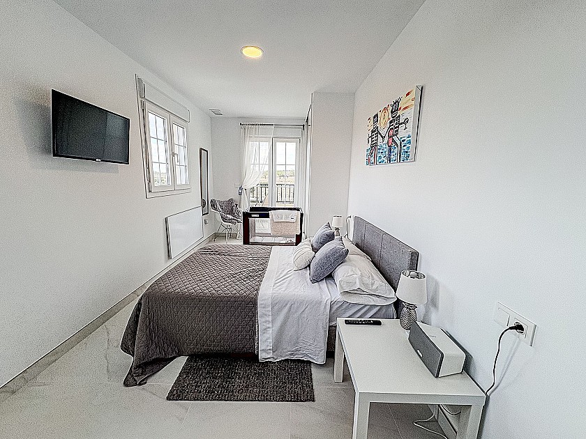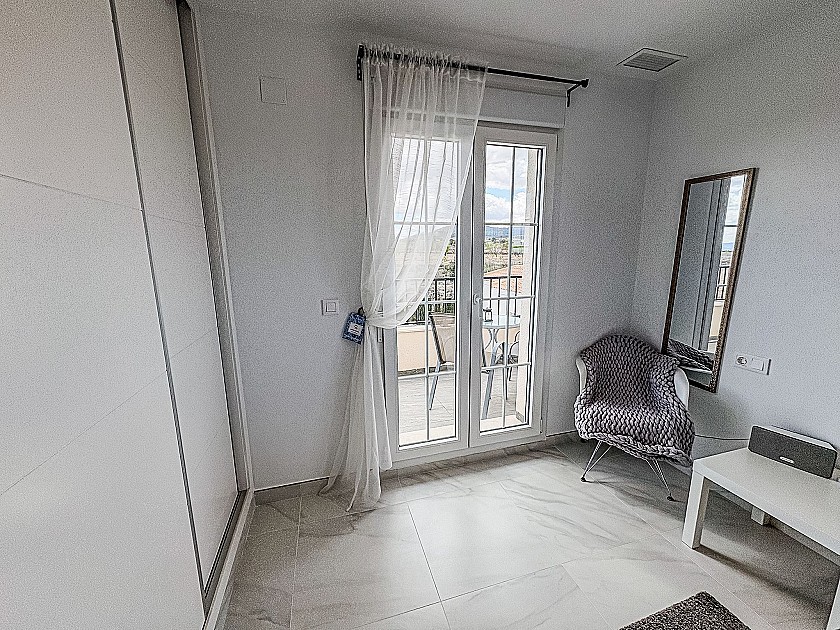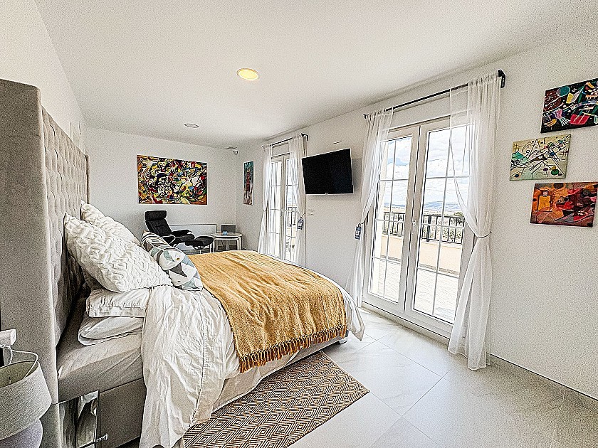 La maison principale comprend trois grandes chambres en suite, toutes équipées de placards intégrés. La suite parentale se distingue par son dressing privé et sa terrasse exclusive, parfaite pour profiter chaque matin d’une vue imprenable sur les montagnes.