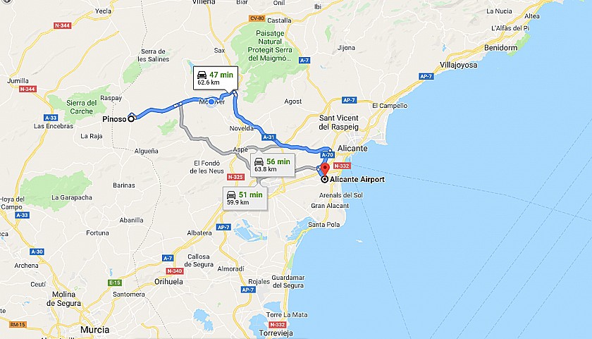 Pinoso (El Pinós) est l’une des villes les plus prospères d’Espagne. Elle possède une carrière de marbre, une industrie de la chaussure florissante, des gisements de sel et une agriculture et une viticulture dynamiques. Située dans la campagne montagneuse de la région viticole d’Alicante, elle se trouve à 45-50 minutes en voiture de l’aéroport, du centre-ville et des plages d’Alicante, et à proximité de la frontière de Murcie.