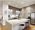 Les cuisines comprennent des placards avec portes et poignées standard, conformément aux plans fournis, un évier et un robinet en inox, la pré-installation pour four, lave-vaisselle et hotte, ainsi que différents plans de travail en granit (inclus dans le budget). (D'autres plans de travail en pierre sont disponibles en option.) L'électroménager n'est pas inclus.