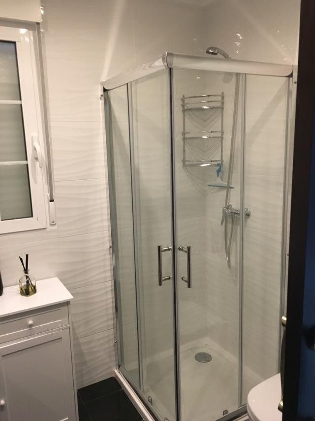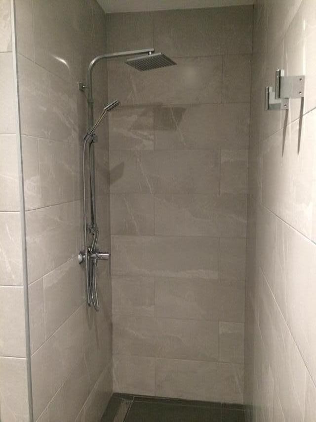 Les salles de bains comprennent une colonne de douche, un receveur de douche ou une baignoire, des meubles vasques (différents coloris au choix) avec lavabos, robinetterie et miroirs, ainsi qu'un large choix de carrelage mural et de carrelage au sol en céramique (différents coloris, imitation bois, etc.).