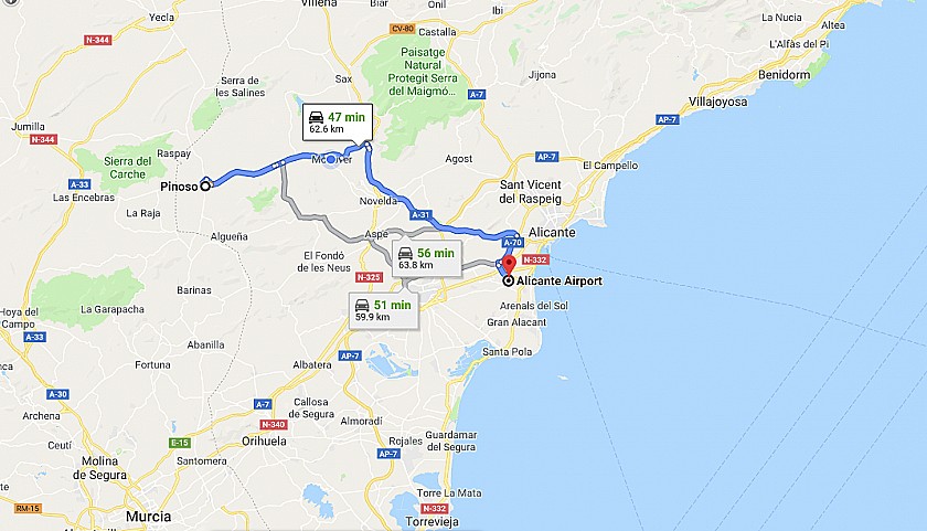 Pinoso (El Pinós) est l’une des villes les plus prospères d’Espagne. Elle possède une carrière de marbre, une industrie de la chaussure florissante, des gisements de sel et une agriculture et une viticulture dynamiques. La ville est située dans la campagne montagneuse de la région viticole d’Alicante, à 45-50 minutes en voiture de l’aéroport, du centre-ville et des plages d’Alicante, et à proximité de la frontière de Murcie.