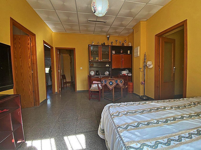 Cette maison dispose de trois chambres et de deux salles de bains. Lorsque vous franchissez le portail électrique et suivez l'allée jusqu'à l'avant de la propriété, vous ressentez immédiatement un sentiment de calme et de tranquillité. Bien qu'il s'agisse d'un emplacement rural, vous êtes littéralement à quelques minutes de la ville animée et toujours populaire de Pinoso.