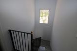 Une grande fenêtre fixe en verre dans l'escalier apporte une luminosité supplémentaire.