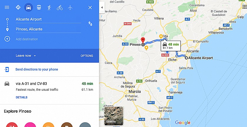 Pinoso (El Pinós) is een van de rijkste steden van Spanje, met een marmermijn, een bloeiende schoenenindustrie, zoutlagen en een bloeiende wijn- en landbouwindustrie. De stad ligt op het bergachtige platteland van het wijngebied van Alicante, op 45-50 minuten rijden van de luchthaven van Alicante, de stad en de stranden en dicht bij de grens met Murcia.