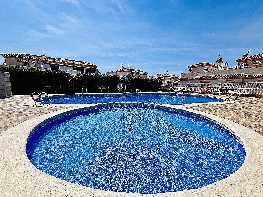 Cette charmante propriété offre un grand jardin à l'avant, un grand solarium privé et l'accès à une belle piscine commune. Idéalement située à quelques pas du célèbre centre commercial La Zenia Boulevard, à quelques minutes à pied du populaire marché du samedi et à seulement 10 minutes en voiture des superbes plages côtières.