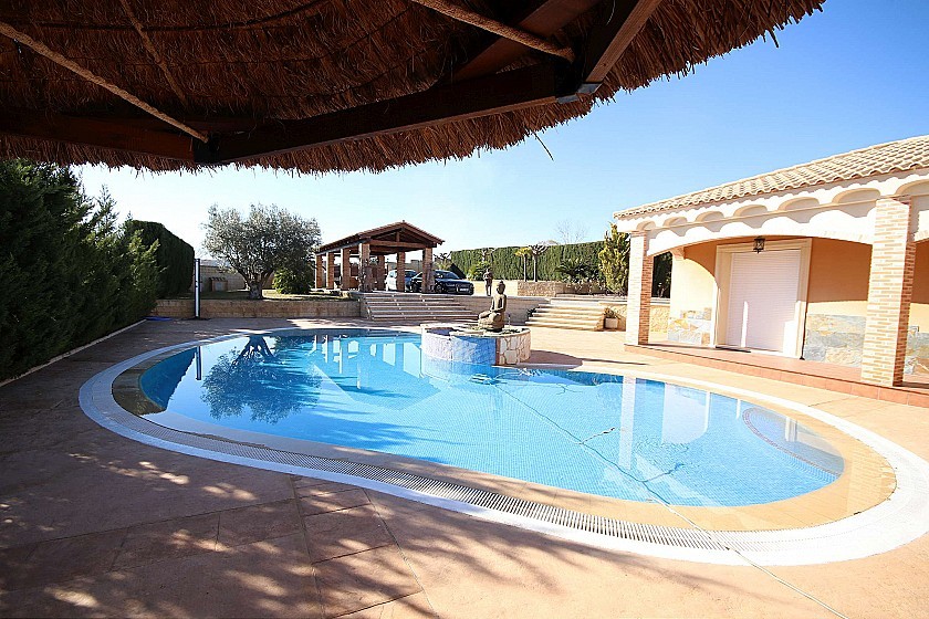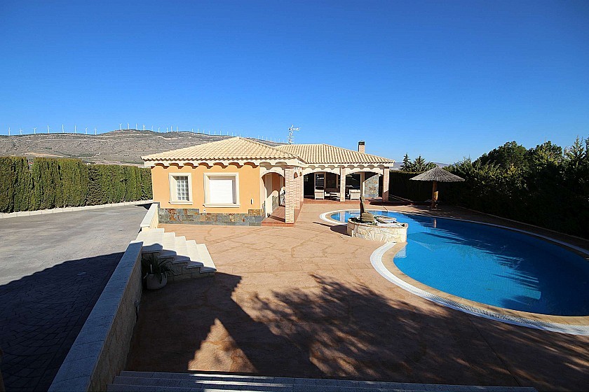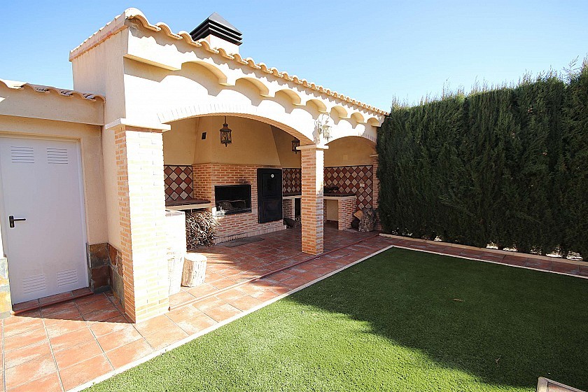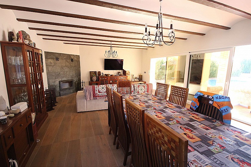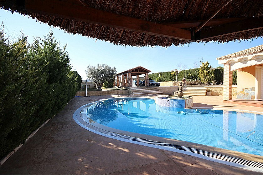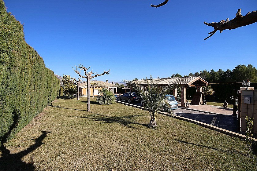 Mooie vrijstaande villa nabij Caudete, met een totale bebouwde oppervlakte van 240m² en een mooi beheersbaar perceel van 2000m² met volwassen bomen en gras. Het huis heeft 3 slaapkamers en 2 badkamers binnen, met vloerverwarming, een grote open keuken, ingebouwde kasten, een open haard en automatische rolluiken. Buiten is een overloopzwembad, een overdekt terras met zitgedeelte, een carport voor twee auto's, een open barbecue en een buiten eet-/speelkamer, evenals een toilet en berging. Toegang tot de geasfalteerde weg en een korte 5 minuten rijden naar de stad. Gelegen in een rustige woonwijk. Leidingwater en elektriciteit.