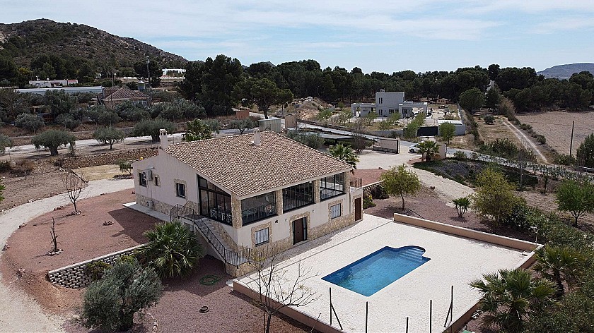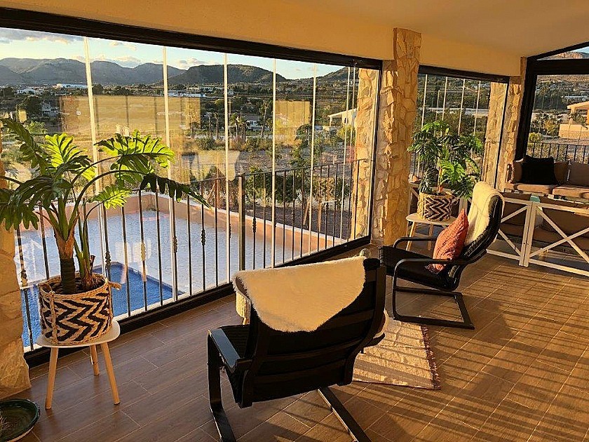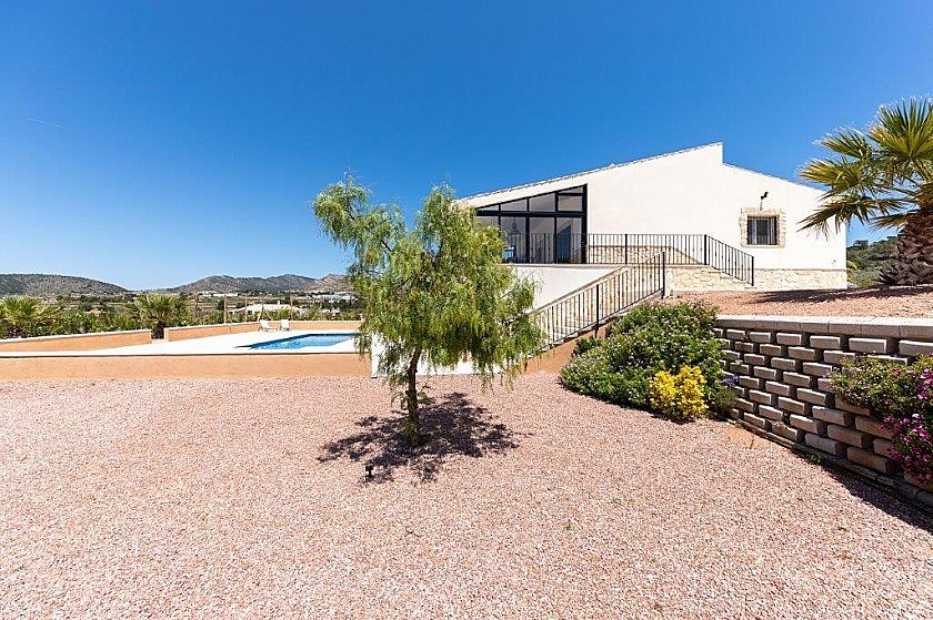Wow-factor villa 5 jaar geleden gebouwd maar de villa is in gloednieuwe staat, dit heeft zeker de wow-factor, de villa ligt tussen Aspe en La Romana met een prachtig uitzicht rondom, de tuin is een paradijs voor tuiniers, het hoofdhuis heeft een zeer groot terras gedeeltelijk beglaasd met glazen vouwgordijnen waardoor het perfect is voor het hele jaar door, in het huis is een grote open keuken met indrukwekkend eiland en woonkamer met open haard, dit leidt tot 3 tweepersoonsslaapkamers, een grote familiebadkamer en de master heeft een ensuite en kleedkamer, bij het zwembad is de ingang van het gastenverblijf dat een grote woonkamer met keuken en 2 slaapkamers en badkamer heeft, het heeft een grote winkel aan de zijkant, de tuin is gezoneerd met een grote carport die het huis heeft lichtnet en water goed internet, elektrische poorten, airconditioning en verwarming.