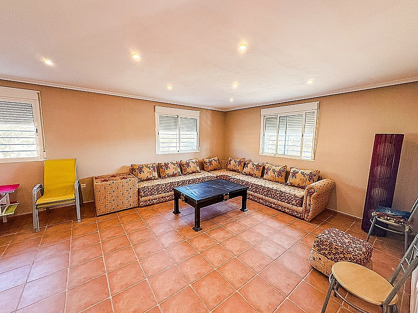 Deze woning ligt op een groot perceel van 10.000 m², waarvan 2.500 m² volledig omheind is, wat privacy en veiligheid biedt. Dankzij de verhoogde ligging en de zuid/oost oriëntatie geniet de villa van veel natuurlijk licht en een panoramisch uitzicht op de omgeving. De woning, gebouwd op één verdieping, heeft een totale woonoppervlakte van 187 m².